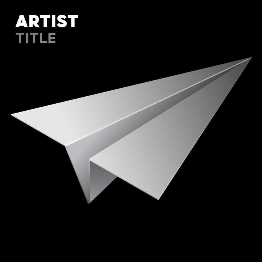 The basic illustration is made in Illustrator after that we go to Photoshop, to add gradients to the large surfaces and to a couple of well-placed lines. This gives the paper plane illustration weight and dimensionality. Because of the specific way I make the design easily customizable, I know which range of grays I want to use. And that also is the reason the track title is a specific shade of grey.